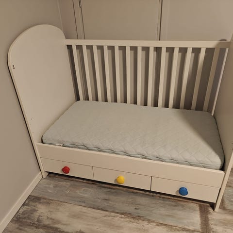 Säng köpt för 2 år sedan på IKEA, madrass ingår. Barnet har aldrig sovit i sängen. Oanvänd.