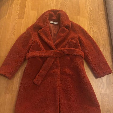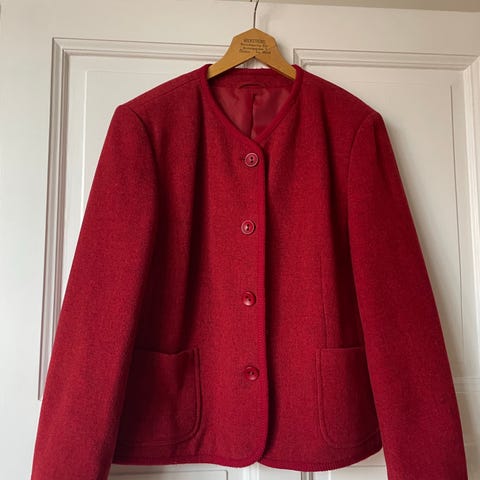 Rab kofta för dam i storlek 38. Plagget är rött och tillverkat i polyester. Koftan har lång ärm, rund halsringning och knäppning framtill med knappar. Den är lämplig som vardagsplagg eller som extra lager vid svalare väder.