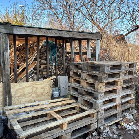 Träpallar / lastpallar / EU-pall av varierande kvalitet och mått. 9 st totalt. Några hela, några med defekter. Bortskänkes = alla eller ingen.