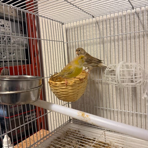 Kanariefåglar med en stor bur 1000 kr