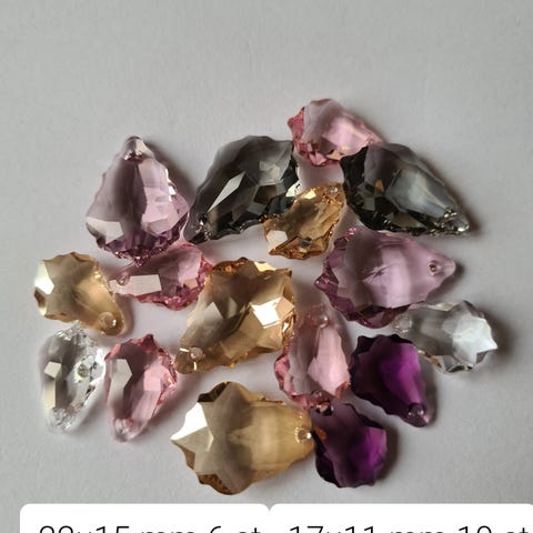 Swarovski hjärtan med hål för hängen. Olika färger, storlekar och antal. Se bilderna. Eventuellt slitage kan förekomma då enstaka varit monterade.