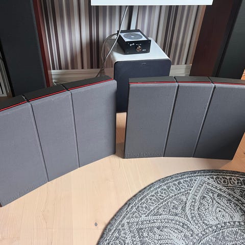 - Väggfästen (oanvända) och bordsstativ till högtalarna