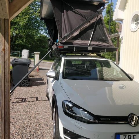 Fönster åt alla håll. De 2 i taket går inte öppna resten går att öppna och har myggnät. 4 extra ventilationsfickor.