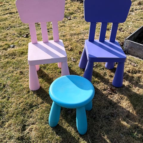 IKEA barnmöbelset runt bord och stolar plast grön rosa
