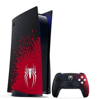 Jag har köpt till Spider-Man "console covers" med matchande DualSense i samma tema (numera slutsålda). Dem vita original "kåporna" medföljer givetvis också.