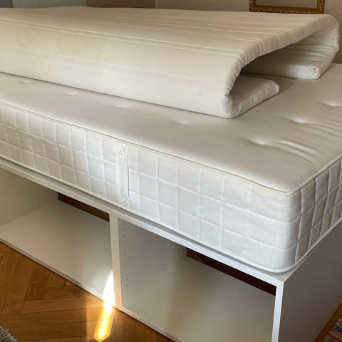 Bra skick men några fläckar som om man vill tvätta i maskin då alla madrasser har dragkedja