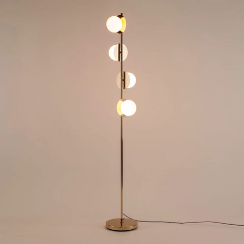 Säljer en stilren Molekyl golvlampa med lampfot i metall och rund glaskupol. En tidlös och elegant lampa som ger ett mjukt, behagligt ljus – perfekt bredvid soffa eller fåtölj.