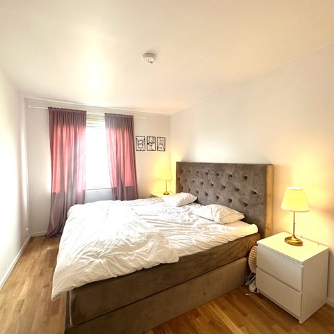 180 bred sängram i trä. Klassisk modell med hög huvudgavel och fotgavel i träutförande. Passar dubbelsäng med två madrasser. Träramen ger ett stabilt intryck och neutral design som fungerar i många sovrumsmiljöer. Sängbord 2 olika varav en antik ingår, dock ej lampor, textilier och övrig inredning på bilderna ingår inte om inget annat anges i annonsen.