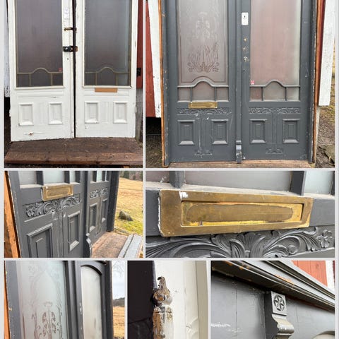 Äldre charmiga fönsterglas med blymönster i olika varianter (två rätt snarlika), utan karm. Ålder, ursprung etc. okänt, inköpta i detta skick till ett projekt som blev nerlagt. Saknas lite bly på ett av dem, men skickar med en rulle bly som för den händige är lätt fixat :-). Det grå nertill är rörisolering de står i för att inte skadas. Mått ca 145 x 36 cm. Pris för alla fyra; 500 kr. Säljer dem helst som en enhet. Finns i Sthlm norrort.