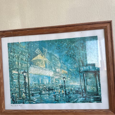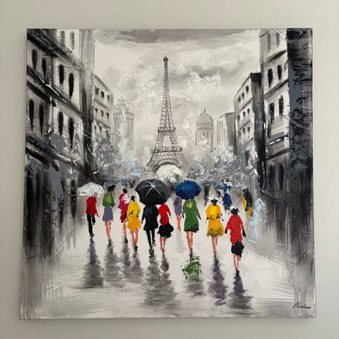 Paraplyerna tavla oljemålning stadsmotiv