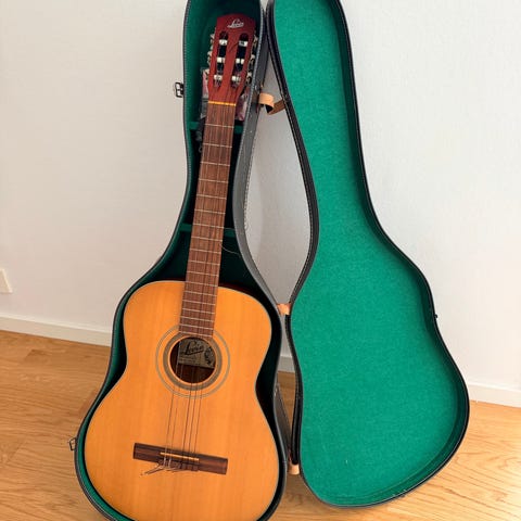 Levin klassisk akustisk gitarr i naturträ, baksida o sidor i mahogny.