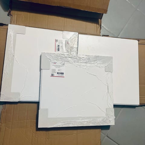 Nytt hyllplan, dock transportskada på ena hörnet, se bilder.