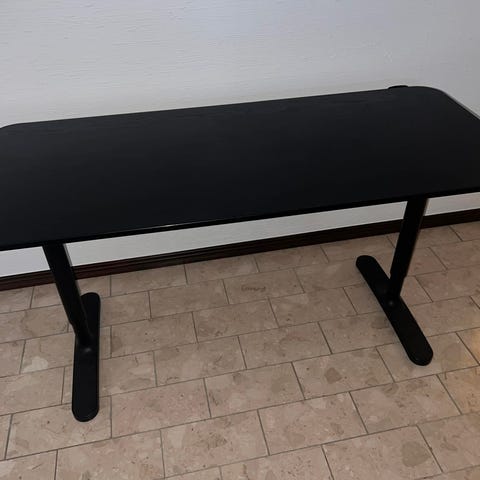 Svart manuellt höj/sänkbart skrivbord från IKEA i bra skick.