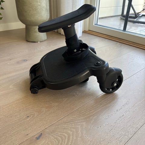 Passar att fästa bakom kompatibel Bugaboo-barnvagn för att ge ett extra åk- eller ståutrymme vid promenader. Haft den på bugaboo fox.