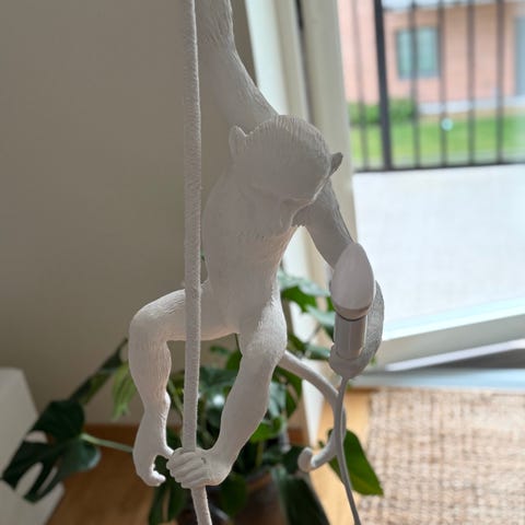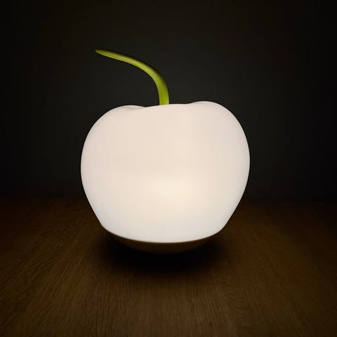 Lampan ger ett mjukt och behagligt ljus och fungerar både som lampa och inredningsdetalj.