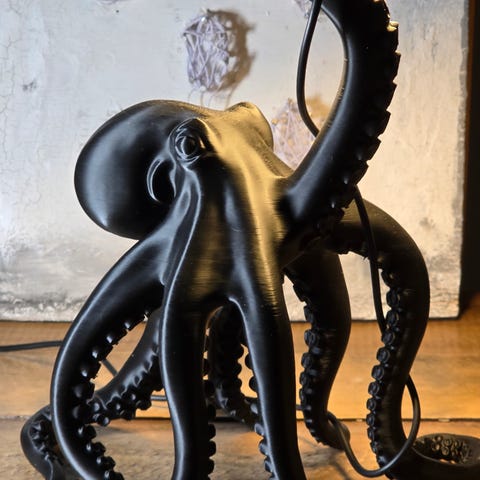 Säljer en 3D-printad lampa i form av en bläckfisk. (24 cm.)