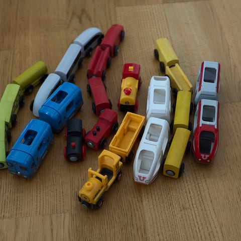 BRIO tågbana med många tillbehör såsom brandstation, flygplan, båt, tunnel. Flera lok och vagnar medföljer. Fint skick!