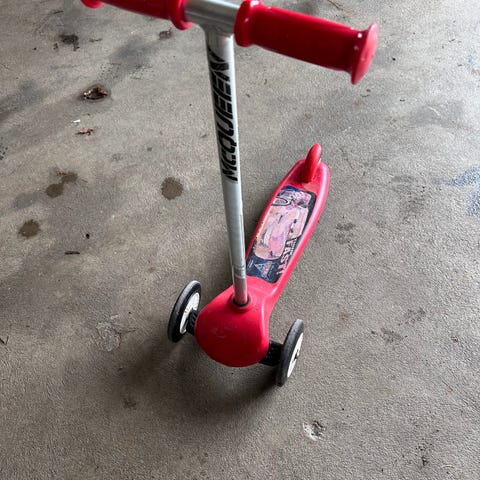 Sparkcykel i trickmodell med styre i svart och platta i grönt. 80 cm från styre till mark.