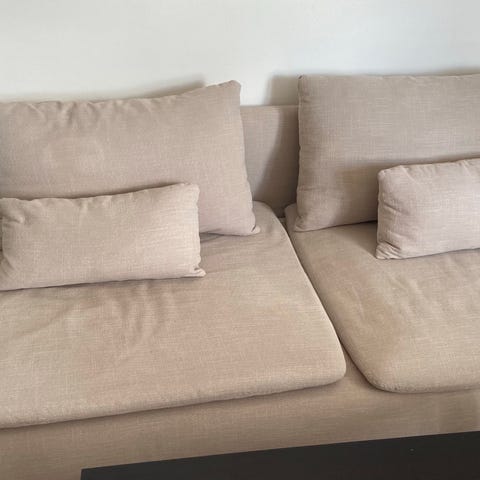 Säljer min söderhamn soffa. Har extra tyg som den är omklädd till från BEMZ . Tyger kostar 4000 cirka nytt. Det medföljer alltså två klädsel till soffan.