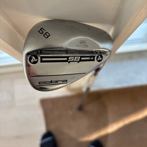 Cobra F6 järnklubba pitching wedge för högerhänta golfare. Klubhuvud i metall med märkning "P". Skaft KBS PGI Players 55 L. Grepp med mönstrad yta för bättre grepp. Passar som del av ett Cobra F6-järnset eller som enskild wedge på kortare slag mot green.