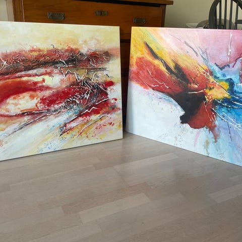 Fina abstrakta tavlor med båtmotiv av Gunborg Carlsson, 2002.