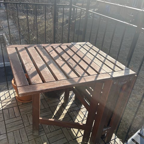 Ikea Äpplarö hopfällbart bord med två tillhörande stolar. Med lite extra kärlek genom ytbehandling kan du få dem som nya. Fullt funktionsdugliga, inga skador.