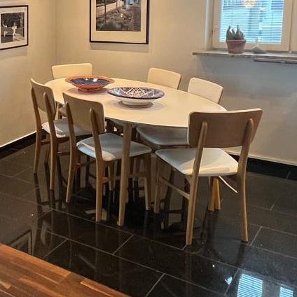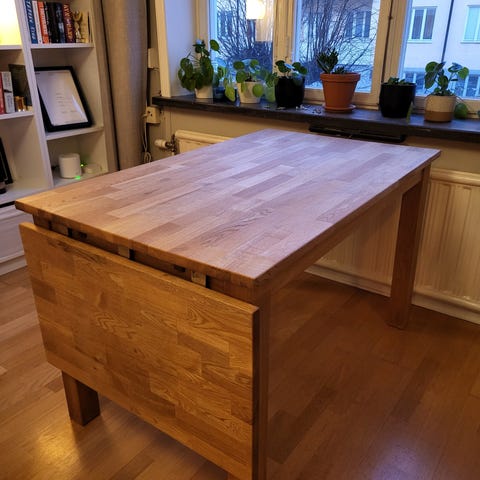 Köksbord i vitlaserad ek, inköpt 2021 för 6000kr.