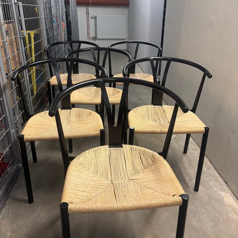 Stol av björk med sits i rotting. Dimensioner: 42 x 44 x 88 cm. Sitsen är ca 46 cm hög.
