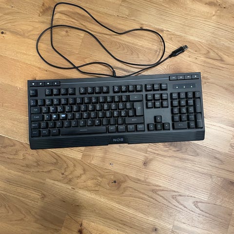 Tangentbordet är ett fullstort, trådbundet QPAD-tangentbord med mekaniska brytare och flerfärgad RGB-belysning i tangenterna samt längs sidorna. Tangentbordet har numerisk del, funktionsrad och piltangenter, anpassat för stationär dator. Har inte använt den många gånger, FN knappen saknas då jag tagit av den för det stör när man spelar, den är borta så tangentbordet kommer utan den, men den används inte till något så det kommer inte spela någon roll.