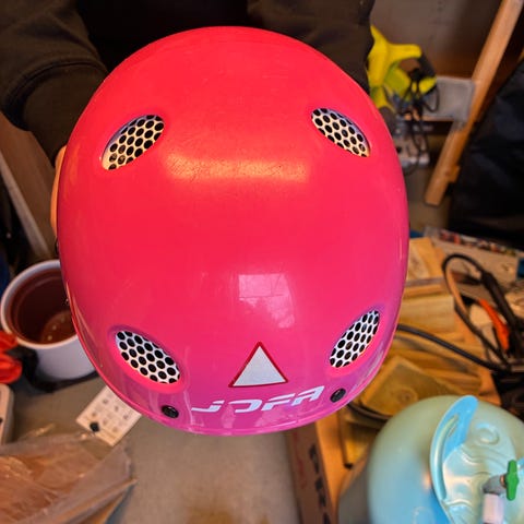 Rosa hjälm som passar för cykel, sparkcykel eller skateboard etc.