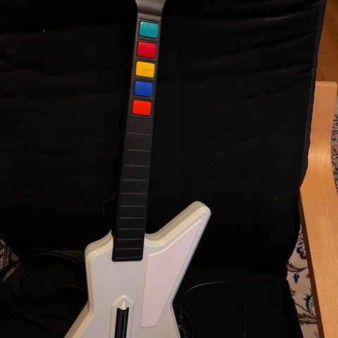 Säljer en Gibson Explorer‑gitarr till Xbox 360 / PC med USB‑anslutning. Gitarren är noggrant rengjord med isopropanol, genomgången och fungerar felfritt.