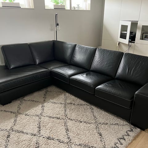 3-sits kvalitetssoffa i läder med pall från Ire