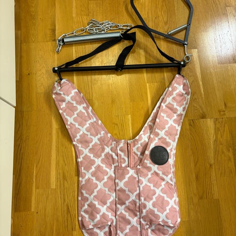 Monteras enkelt i dörrkarm med medföljande fjäder och upphängning med karmsax. Stabil konstruktion med metallram och bekväm tygsits.