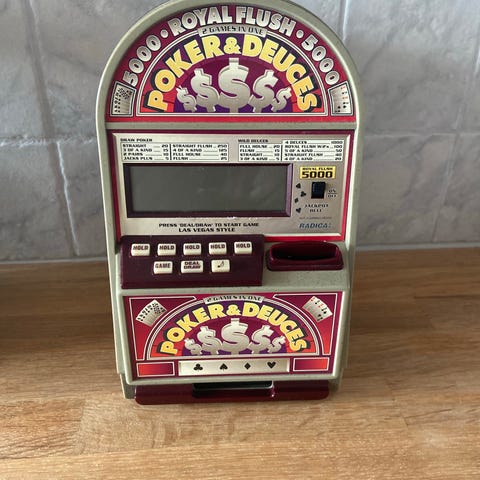 Rocra Penn spelautomat i fristående modell. Skåpet har träliknande brun front med dekorpanel och en centrerad ljuslåda med Rocra Penn-logotyp. Automaten är avsedd för spelbruk i inomhusmiljö och är utformad för placering på golv. Passar exempelvis i spelrum, hobbyrum eller liknande miljöer där man vill ha en klassisk spelautomat som inredningsdetalj. 5 kronorna igår ej.