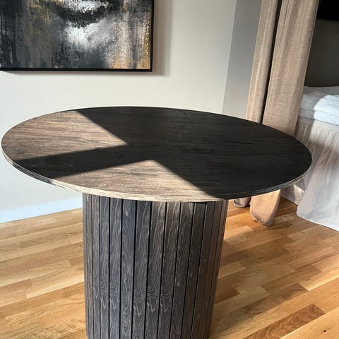 Handgjort matbord från snickeri. Matbord i mörkbetsad ek. 105 cm i diameter.
