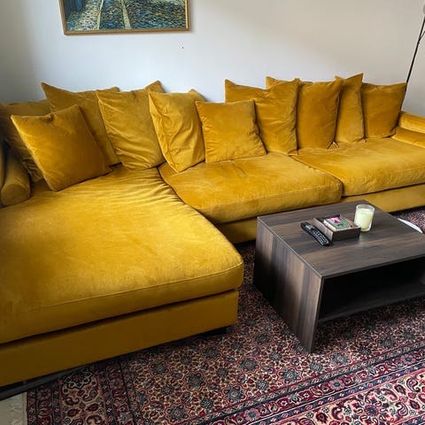Röd soffa Bröderna Anderssons Andrew 2.5-sits svängd
