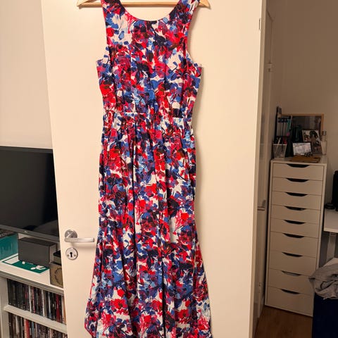 H&M party-/cocktailklänning i stretchigt material i storlek 36. Klänningen är flerfärgad med blommigt mönster och är tillverkad i polyester. Modellen har ärmlös överdel och markerad midja med utsvängd kjol samt svart band i stretch i ryggen. Dragkedja bak för enkel på- och avtagning. Lämplig för fest- och högtidstillfällen.