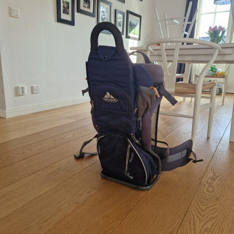 Bärstol från Vaude i bra skick. Bra för längre promenader eller som alternativ till vagn på semestern. Bra med förvaringsfack för extra packning etc. Medföljer även ett solskydd.
