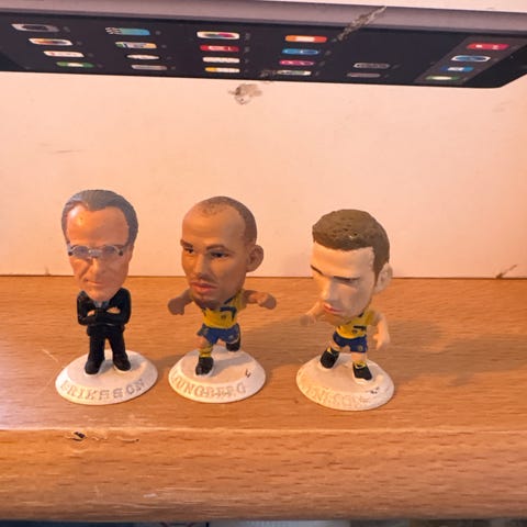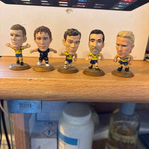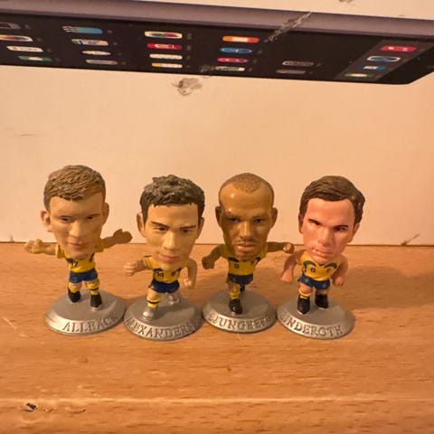 Jag vill hitta en boll till min träfigur föreställande en fotbollsspelare i AIK. Figuren är från Gunnarsson och är 18 cm i höjd. Plattan är 5,5 x 7 cm.