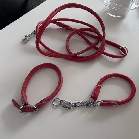 Koppel för hund i svart läder.