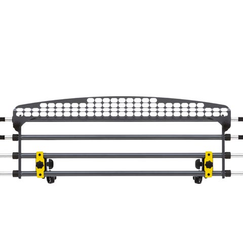 Hundgaller i svart metall. Gallret är avsett att monteras i bil för att avskärma lastutrymme från kupé, eller användas som avgränsning för hund. Konstruktionen består av ett stålnät med ram och fästen upptill för montering. Passar för dig som behöver ett enkelt galler för transport eller avskiljning av hund i fordon eller liknande utrymme.