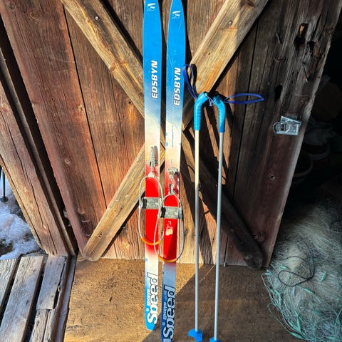 Madshus turskidor med bindningar, stavar och pjäxor. Skidorna passar åkare som har längden 168 cm och 178 cm med vikten 70 respektive 80 kg. Pjäxorna är stl. 39 och 42. Stavarnas länd är justerbar. Vi har åkt totalt 3 mil med hela utrustningen. 3000 kr per set.