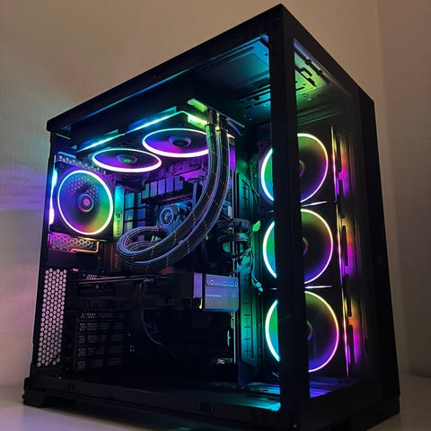 Säljer en nybyggd gamingdator dator i ett kompakt format med exemplariskt luftflöde.