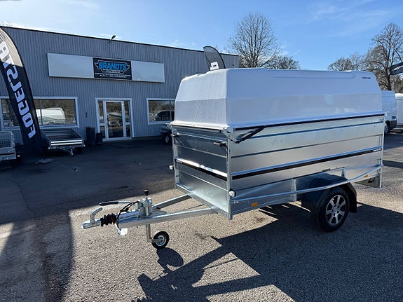 2300S är den största modellen i serie 2000, byggd för att rymma mer med sina förstärkta sidopaneler och 40 cm höga sidor. Tack vare fällbara fram- och baklämmar blir det enkelt att lasta längre gods, och tippfunktionen gör både lastning och lossning smidigare – perfekt för mindre maskiner som gräsklippare eller skotrar. För extra stabilitet har släpet ett stödhjul som standard, och invändiga surrningsöglor ser till att lasten hålls säkert på plats. Den bakre lämmen är dessutom klädd i slitstark aluminiumdurk, vilket ger bättre grepp vid lastning och en hållbar yta med lång livslängd.