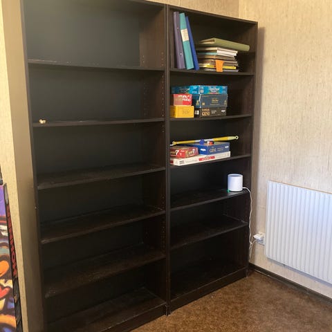 Säljer 2st billy bokhyllor från IKEA. Nyligen köpta och mycket bra skick. Finns även extra hyllplan i glas och den ena bokhyllan har en tillsats som gör den högre.