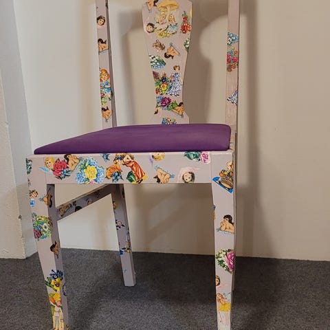 Grundmålad stol - rosa sammet - ramar foto rosa + grundmålad pedestal