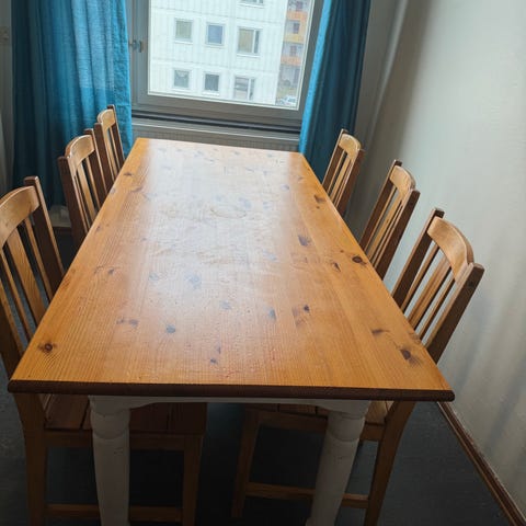 Stabila stolar. Två utdragsskivor till bordet 2*40cm