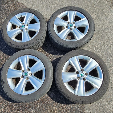 Bakdäcken har ett mönsterdjup på 5 mm (mätt från slityta till ovanpå slitagevarnaren, alltså mer än 5 mm totalt mönsterdjup).