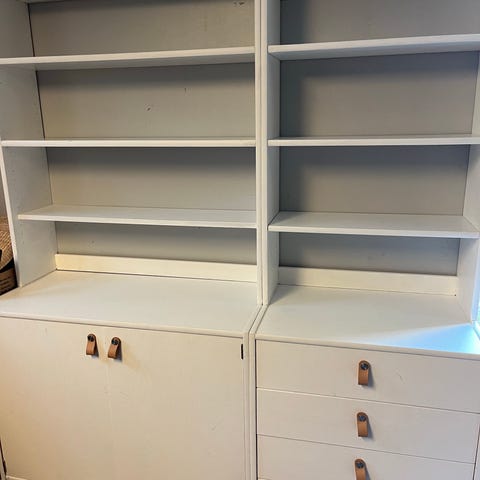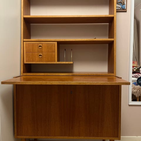 Vintage bokhyllor ena har en sekretärlösning