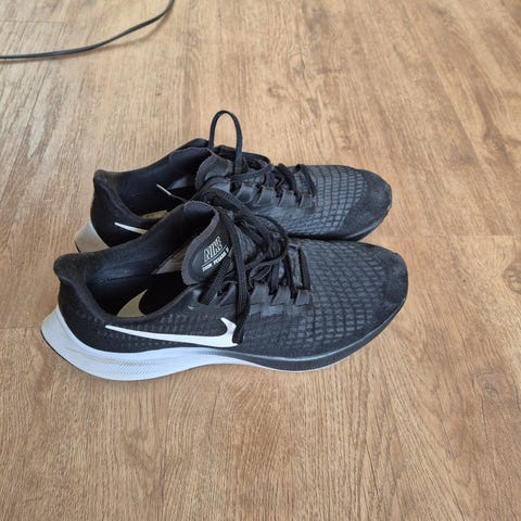 Nike sneakers i storlek 41. Modellen är i svart med vit sula och vit Nike-logga. Ovandel i meshtextil med snörning framtill.